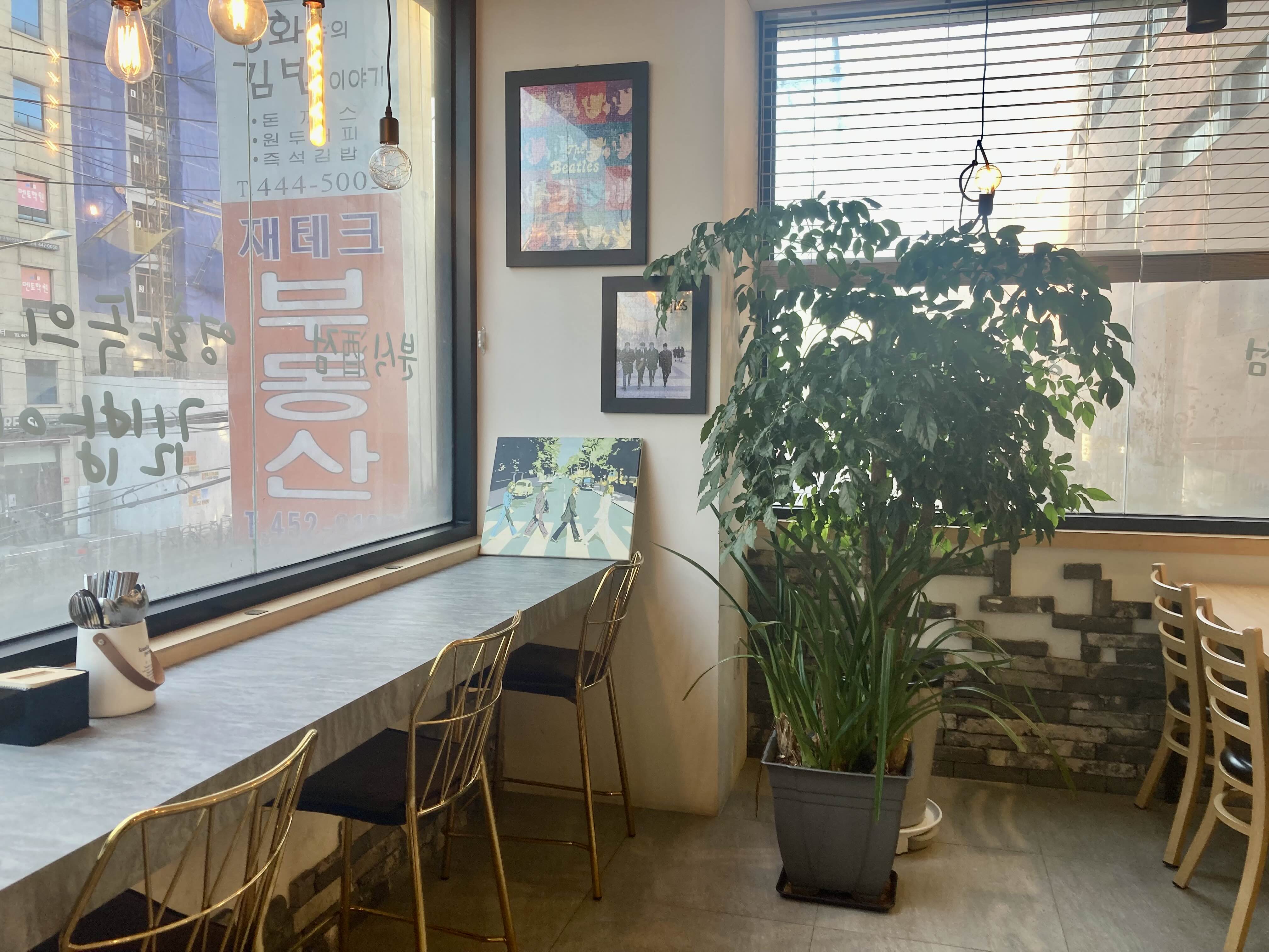 들어오자마자 보이는 시각대로 촬영했습니다. 유명한 사진과 그림, 캐릭터까지 배치되어 있고 눈이 정화될 수 있는 화분들까지 곳곳에 장식되어 있어서 깔끔하기도 하고 아기자기하기도 합니다. 너무 이쁘죠. 가족 외식으로도 딱일 것 같아요!