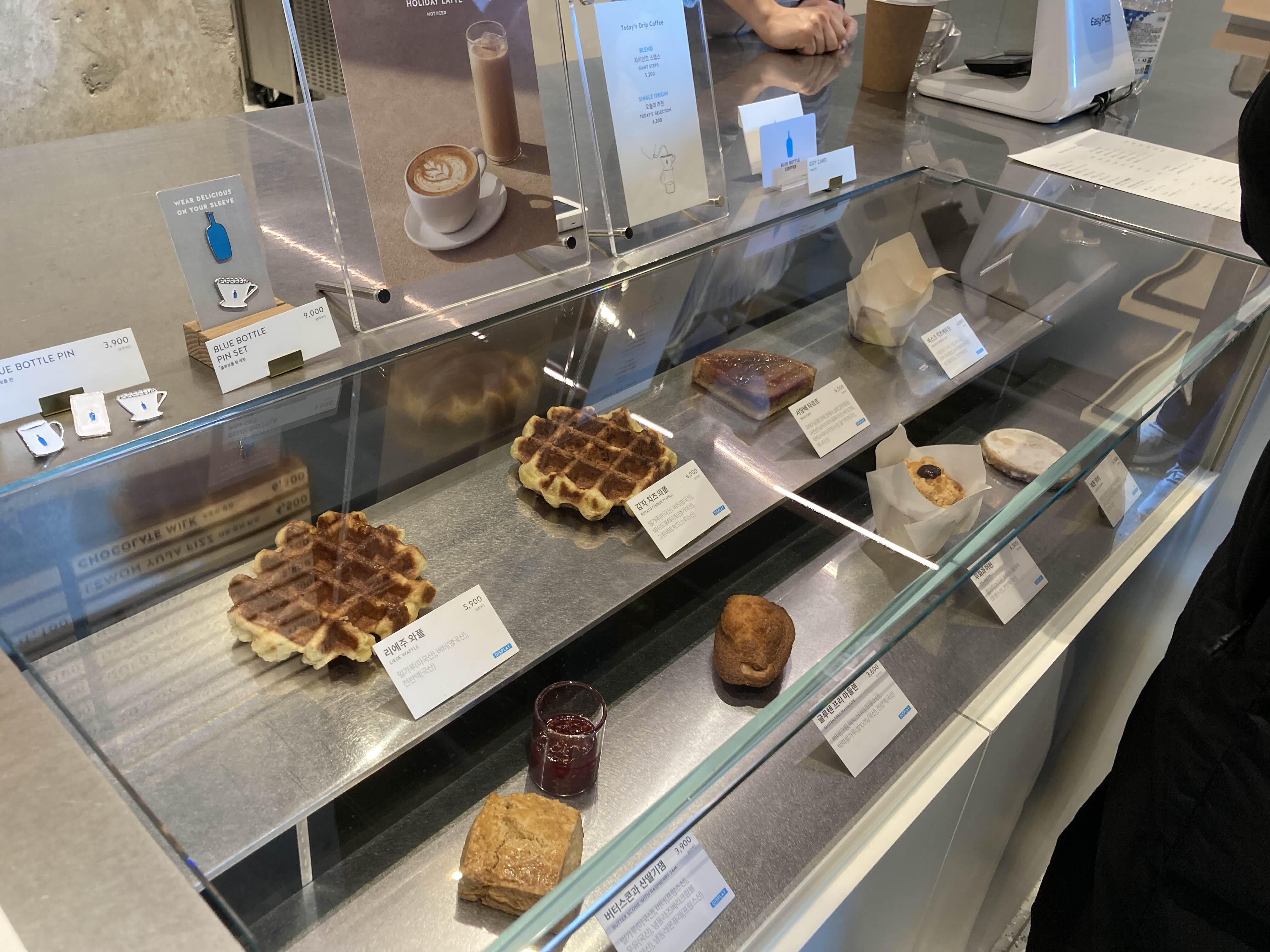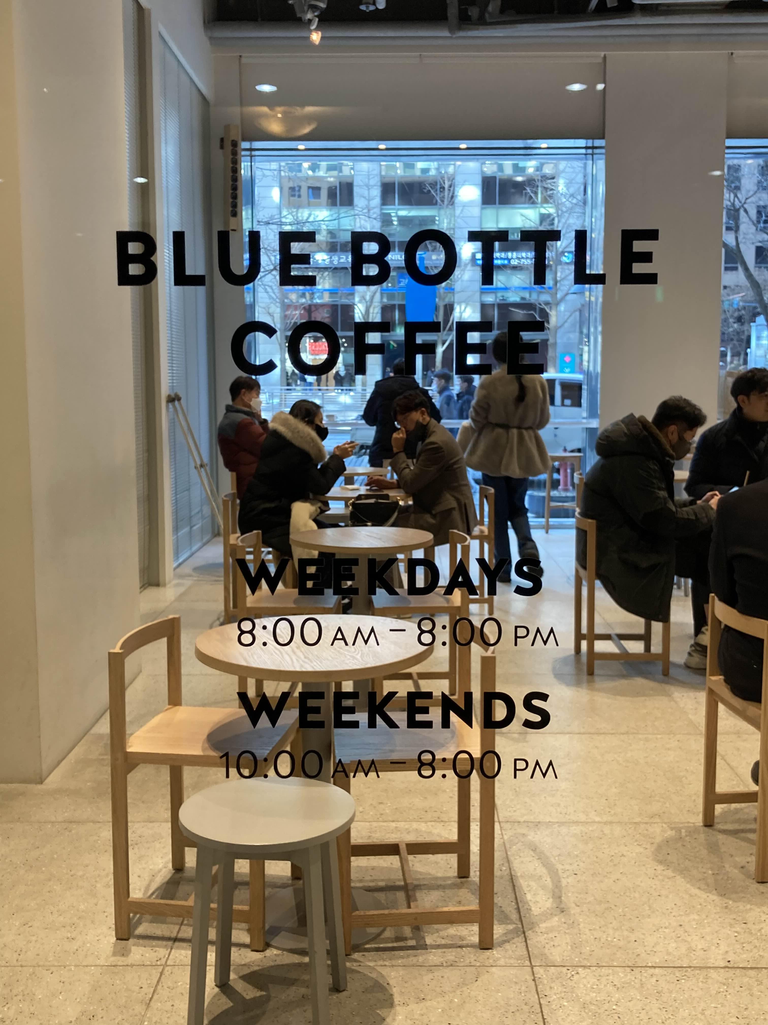 아, 아까 앞서 말했듯이 블루보틀은 커피 퀄리티에 집중하는 카페 인 만큼 인테리어가 미니멀하고 매장 내에 와이파이와 콘센트도 없습니다. 또 매장이 넓지만 테이블이 많지가 않아서 사람이 몰리는 날과 시간에는 매장 이용이 어려울 수 있습니다.